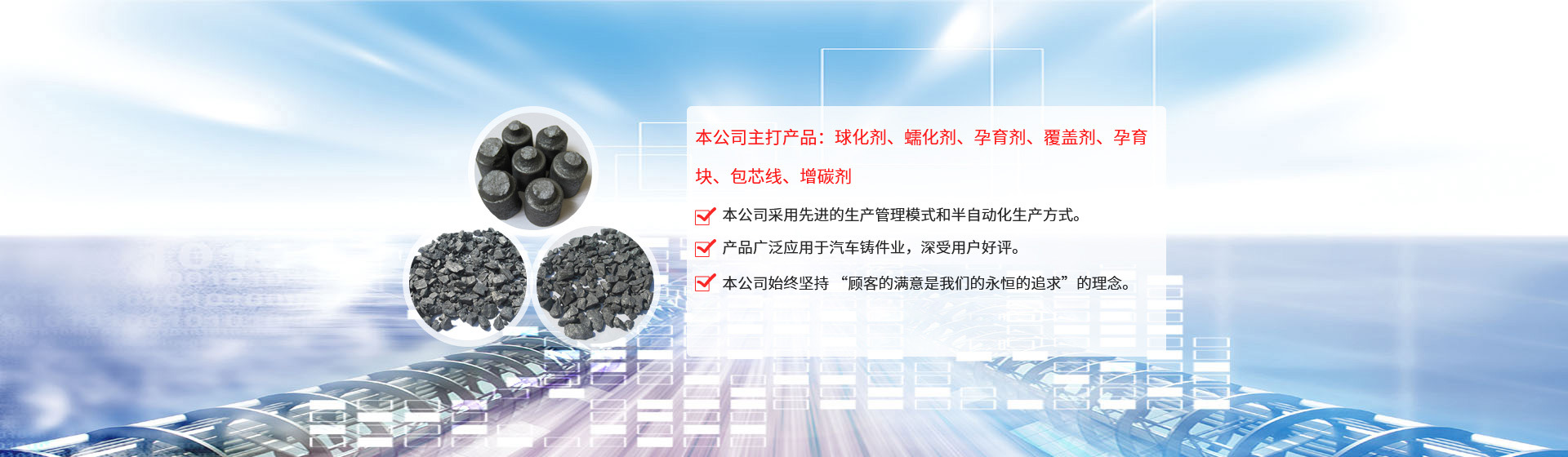 江蘇旦晨新材料科技有限公司、鎮(zhèn)江市勤成鑄造材料有限公司于2010年3月,成立于美麗的水上花園城市—江蘇揚(yáng)中,公司是一股份制企業(yè),注冊資本為200萬人民幣,主要從事鑄造用球化劑、孕育劑及相關(guān)產(chǎn)品的生產(chǎn)、加工和銷售。 公司引進(jìn)日本企業(yè)的生產(chǎn)管理模式,半自動(dòng)化生產(chǎn)方式。目前生產(chǎn)能力:球化劑250T/月、孕育劑300T/月、鑄造相關(guān)品200T/月。為嚴(yán)格控制產(chǎn)品質(zhì)量,公司采用國內(nèi)的ICP-AES等離子體發(fā)射光譜儀對采購原